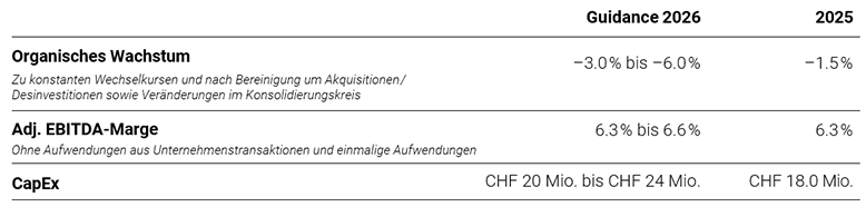 Im Kontext der strategischen Neuausrichtung hat sich der Verwaltungsrat mittelfristige Finanzziele gesetzt: EBITDA > 7.5% und Verschuldung < 3x. Bei einer Verschuldung von wesentlich unter 3x und einem guten Free Cash Flow soll die Kapitalrückführung an die Aktionäre wieder aufgenommen werden. Des Weiteren gehen wir davon aus, dass wir mittelfristig zu einem organischen Umsatzwachstum zurückfinden.