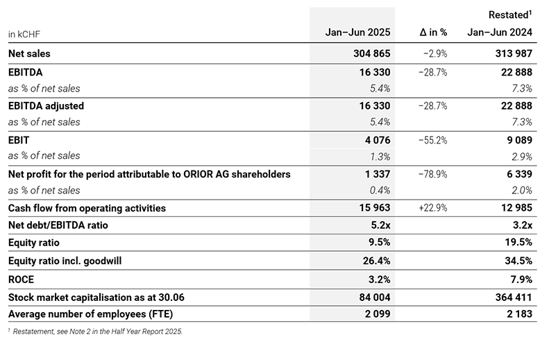 ORIOR Group key figures – First half of 2025